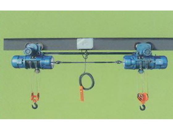 最大40t+40t,手動(dòng)電動(dòng)兩用,機(jī)械電氣同部。雙吊點(diǎn)電動(dòng)葫蘆產(chǎn)品 QBH 型雙吊點(diǎn)電動(dòng)葫蘆是我公司根據(jù)市場(chǎng)需求研發(fā)的一種水利閘門啟閉用的專用設(shè)備,也可用于類似抬吊的場(chǎng)合。 示例:QBH5+5-18-B指雙吊點(diǎn)5t+5t起升高度為18米的運(yùn)行式電動(dòng)葫蘆。 特點(diǎn) 該設(shè)備通過機(jī)械及電氣同步,通過萬向節(jié)連接,強(qiáng)制起升電機(jī)轉(zhuǎn)速同步,而且兩臺(tái)電動(dòng)葫蘆采用一套電氣控制系統(tǒng),克服了電氣動(dòng)作誤差,從而保證兩臺(tái)電動(dòng)葫蘆同時(shí)升降起吊重物,另外,設(shè)備組合方便,便于增加如超載限制、高度顯示及遙控等輔助功能。 業(yè)績(jī) 河北水利水電管理局水工一處,鄭州起重機(jī)械公司,南京鋼鐵公司,衡陽鋼管廠,杭州鋼鐵公司,杭州機(jī)械設(shè)計(jì)研究院,邯鄲鋼鐵公司,北京水工機(jī)械廠等。